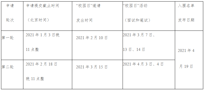 注:本表除申请提交截止时间外的其它日期均为预期,实际日期有可能因实际情况而发生变动,以届时招办发布的通知为准。