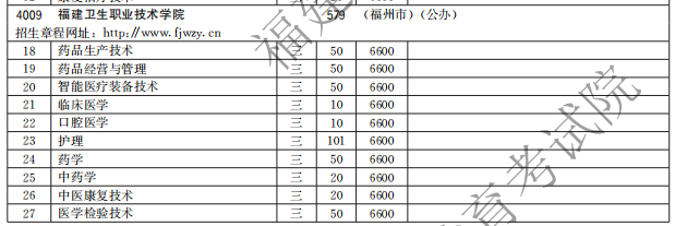 福建卫生职业技术学院2021高职分类招生计划及招生专业