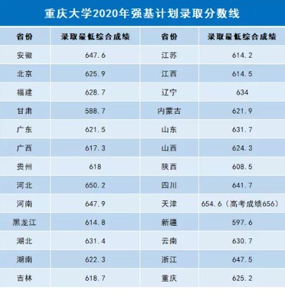 根据《教育部关于在部分高校开展基础学科招生改革试点工作的意见》(教学〔2020〕1号)文件要求,按照《重庆大学2020年强基计划招生简章》相关规定,经学校本科招生工作领导小组审定,确定重庆大学2020年强基计划分省录取最低综合成绩及录取考生名单。