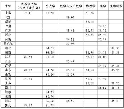 参加测试的考生可进入报名系统(https://bm.chsi.com.cn/jcxkzs/sch/10611)查询测试成绩。各省录取最低综合成绩公示如下: