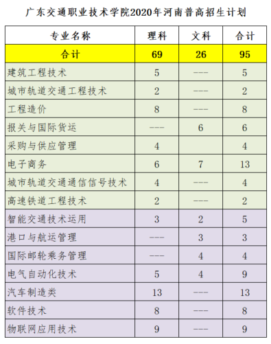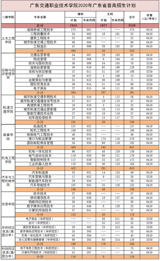 广东交通职业技术学院(Guangdong Communication Polytechnic)是一所工科为主的综合性高等职业院校。国家骨干高职院校重点建设专业有道路桥梁工程技术、城市轨道交通工程技术、汽车检测与维修技术、交通安全与智能控制、航海技术、港口与航运管理。以下为广东交通职业技术学院2020年的招生信息,供考生参考。