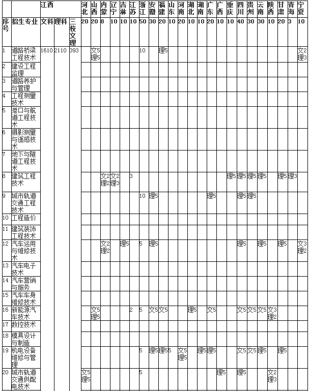 以下为江西交通职业技术学院2020年的招生信息,供考生参考。