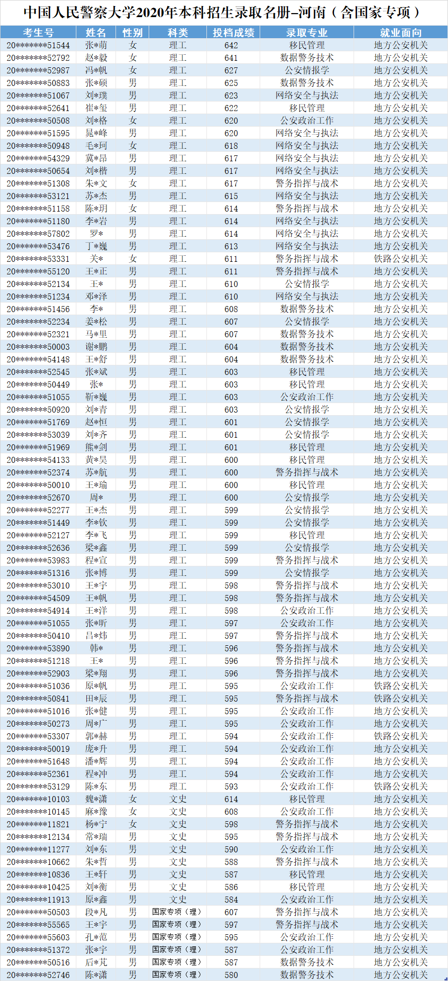2020中国人民警察大学在河南投档分数线