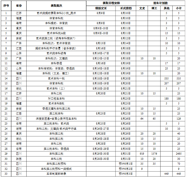 备注:艺术体育类专业进档后,按专业成绩录取。