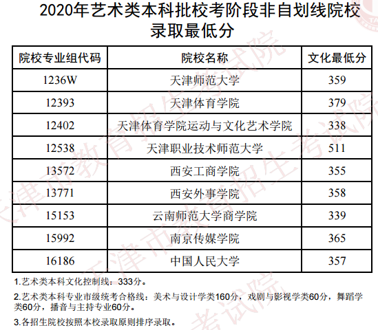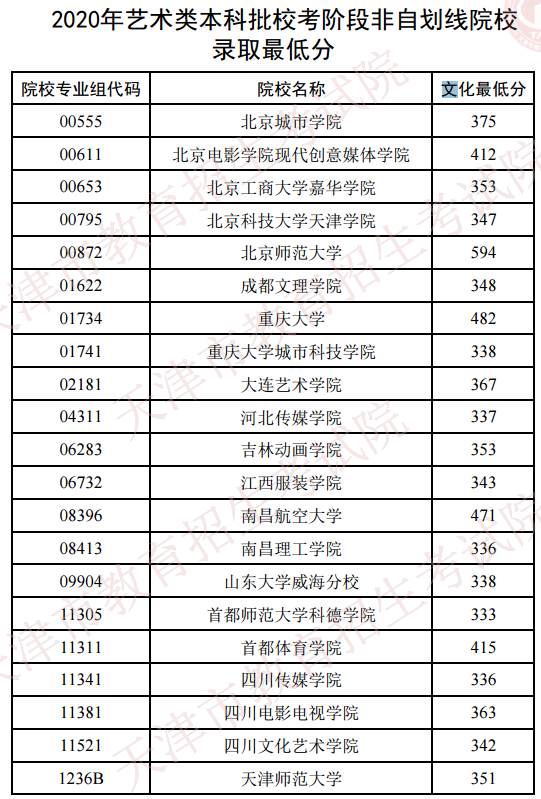 2020年艺术类本科批校考阶段非自划线院校录取最低分公布,下面是各高校校考录取最低分,供参考。