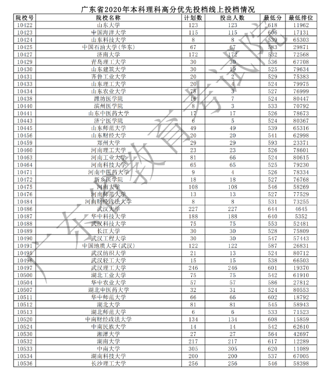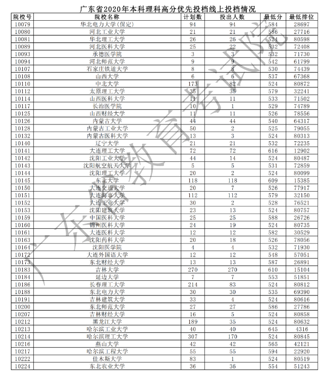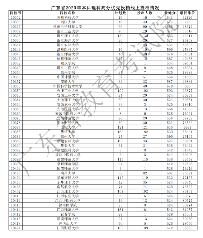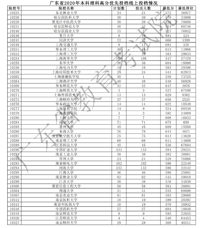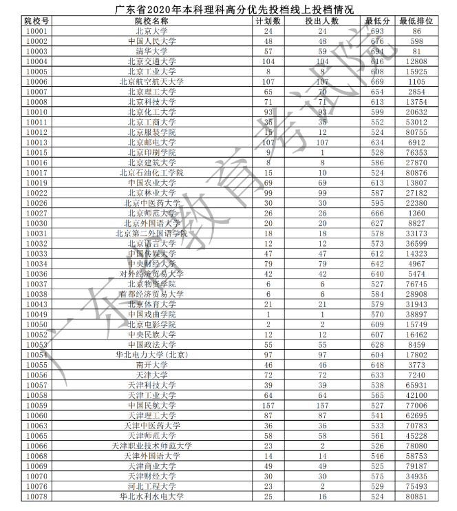 2020广东本科理科高分优先投档最低分 时间:2020-08-17 09:26 分数线 8月16 日,广东省招生办对本科批次高分优先投档线上考生开始投档,共投出88876人,其中,文科投出17126人,理科投出71750人。下面小编为大家详细介绍一下,供大家参考。广东本科理科高分优先投档最低分