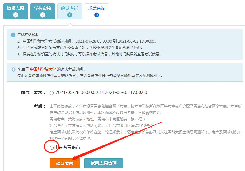 中国科学院大学(以下简称“国科大”)2021年本科综合评价面试(山东省)于2021年6月12-13日在青岛和烟台举行。