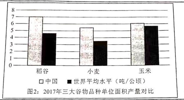 B.2017 年我国稻谷、小麦、玉米的每公顷产量明显高于世界平均水平(可见居民的生活质量和营养水平得到子显著提升。