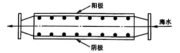 12. 沿海电厂采用海水为冷却水,但在排水管中生物的附着和滋生会阻碍冷却水排故并 降低冷却效率。为解决这一问题,通常在管道口设置一对情性电极(如图所示),通入一定的电流。