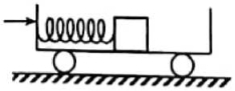 14.如图,光滑水平地面上有一小车,一轻弹簣的一端与车厢的挡板相连,另一端与滑块相连,滑块与车厢的水平底板间有摩擦.用力向右推动车厢使弹簣压缩,撤去推力时滑块在车厢底板上有相对滑动。在地面参考系(可视为惯性系)中・从撤去推力开始,小车、弹簣和滑块组成的系统