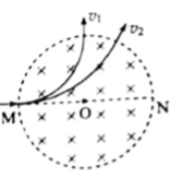 16.如图,圆形区域内有垂直纸面向里的匀强磁场,质量为m,电荷量为q(q>0)的带电粒子从圆周上的M点沿直径MON为方向射入磁场。若粒子射入磁场时的速度大小为,离开磁场时速度方向偏转90°;若射入磁场时的速度大小为