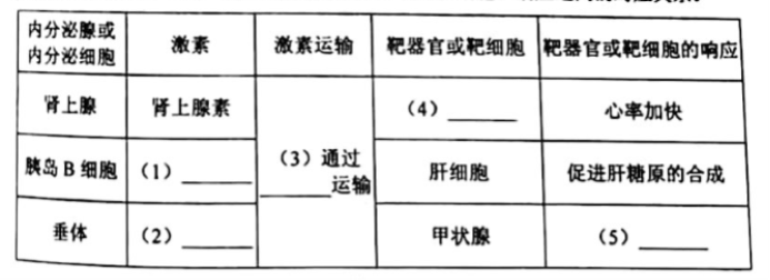 哺乳动物细胞之间的信息交流是其生命活动所必需的。请参照表中内容,围绕细胞间的信息交流完成下表,以体现激素和靶器官(或靶细胞)响应之间的对应关系。