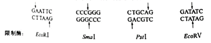 用DNA重组技术可以赋予生物以新的遗传特性,创造出更符合人类需要的生物产品。在此过程中要使用多种工具酶,其中4种限制性核酸内切酶的切割位点如图所示,