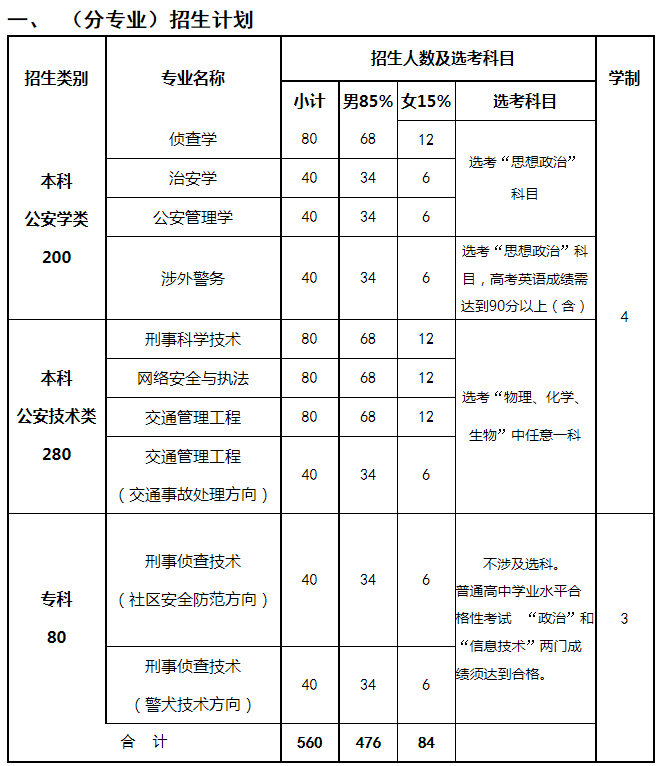 招生计划最终以北京市2021年普通高等学校招生专业目录中公布的专业和计划数为准。(备注:侦查学专业两年以后根据需要分反恐怖方向和政治安全保卫方向)