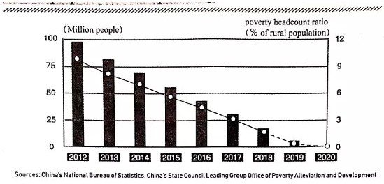 Directions:For this part, you are allowed 30 minutes to write an essay based on the chart below.You should start your essay with a brief description of the chart and comment on China's achievements in poverty alleviation. You should write at least 150words but no more than 200words.