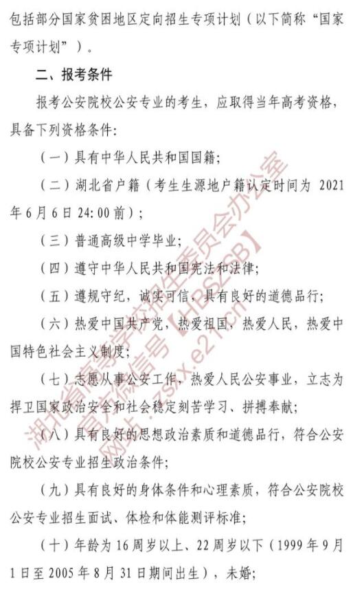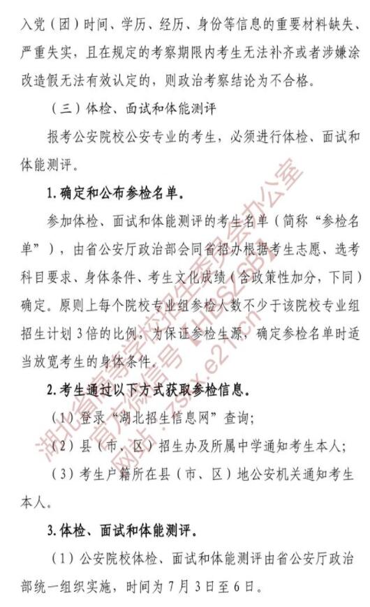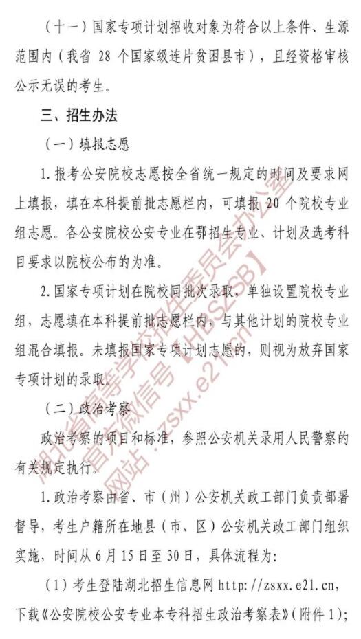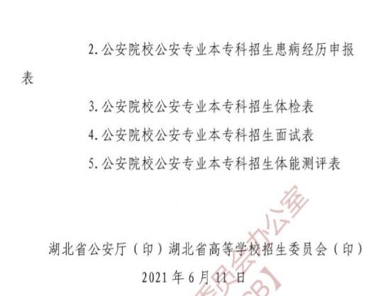 湖北:关于做好2021年公安普通高等院校招生工作的通知 时间:2021-06-16 21:51 高考政策 公安院校公安专业本专科招生政治考察表(点击下载)公安院校公安专业本专科招生患病经历申报表(点击下载)