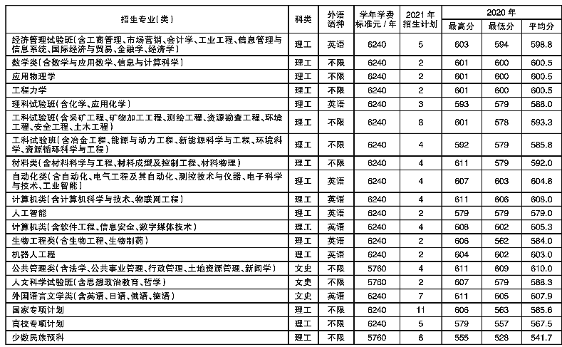 2020 | 本科提前批A段 | 普通类 | 555/7731 | - | 理科 |