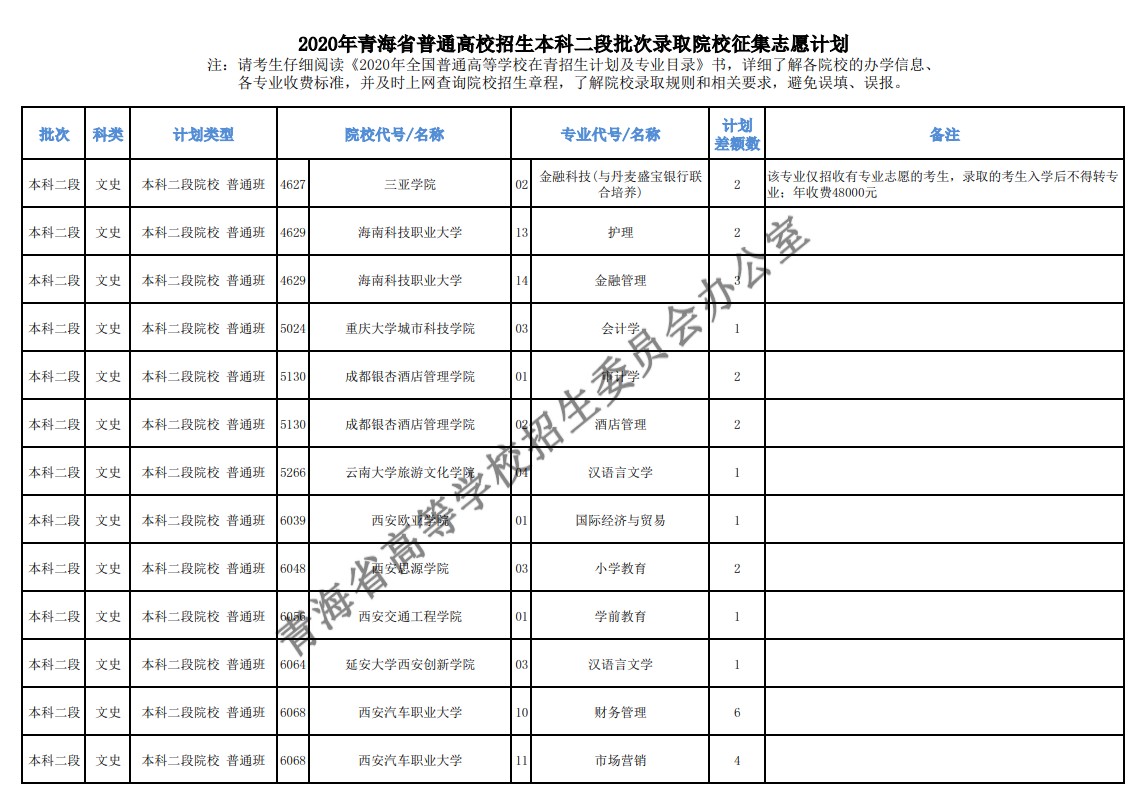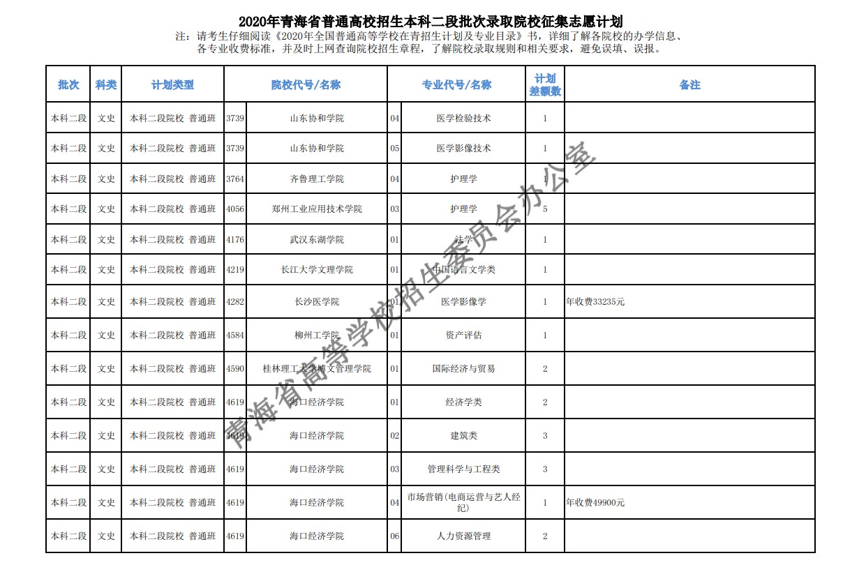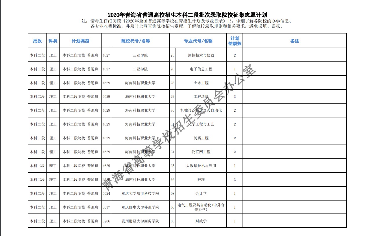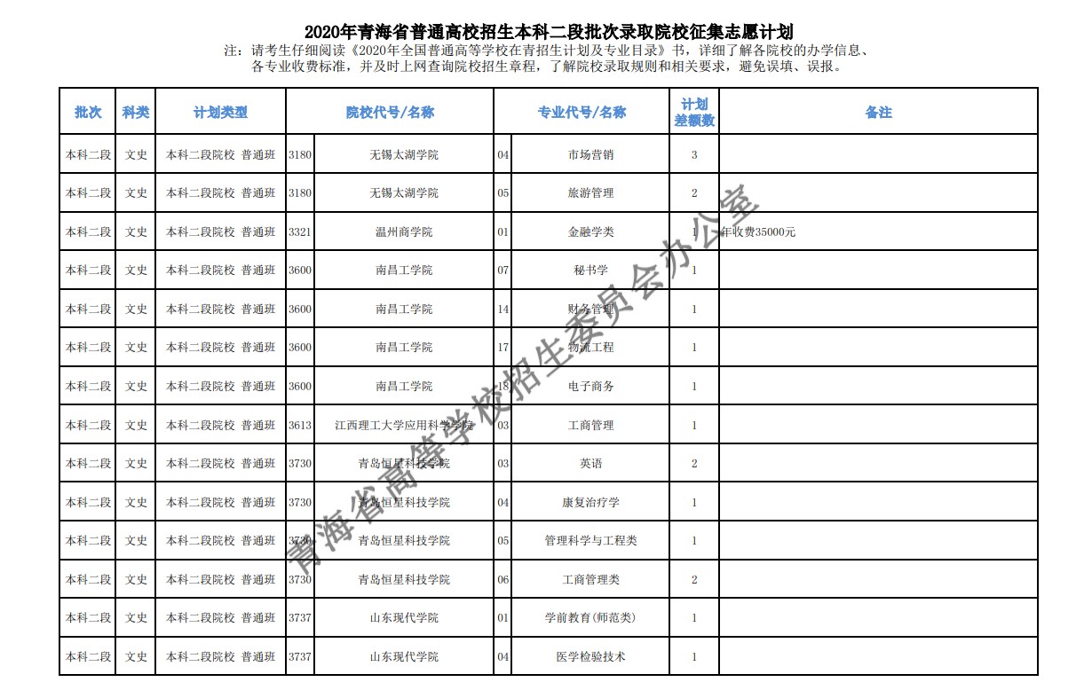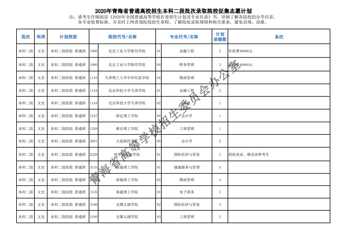 2020年青海高考本科二批征集志愿填报时间及招生计划