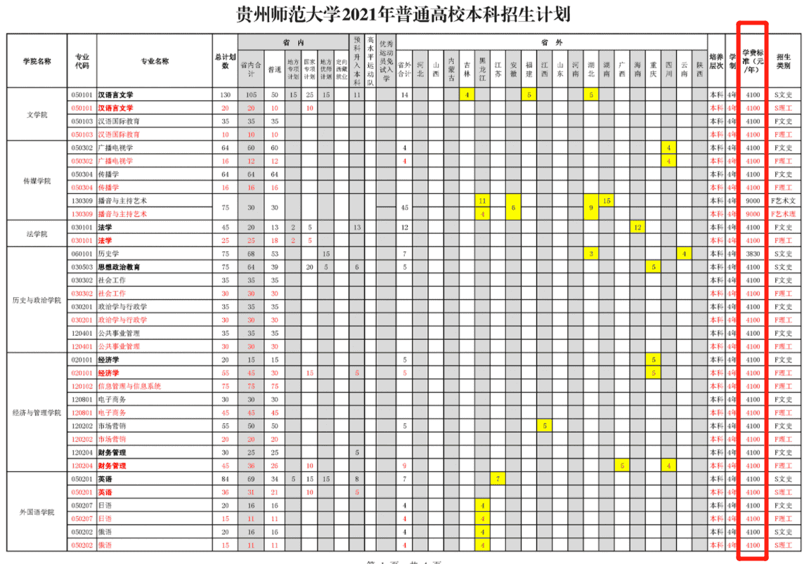 一、贵州师范大学收费项目及收费标准2021贵州师范大学学费标准: