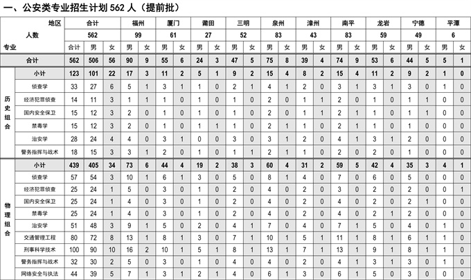2021年福建警察学院招生计划已经公布,以下是福建省及全国各专业招生人数,这是填报志愿时非常重要的参考数据,供大家参考,如有变动,以学校官方公布为准: