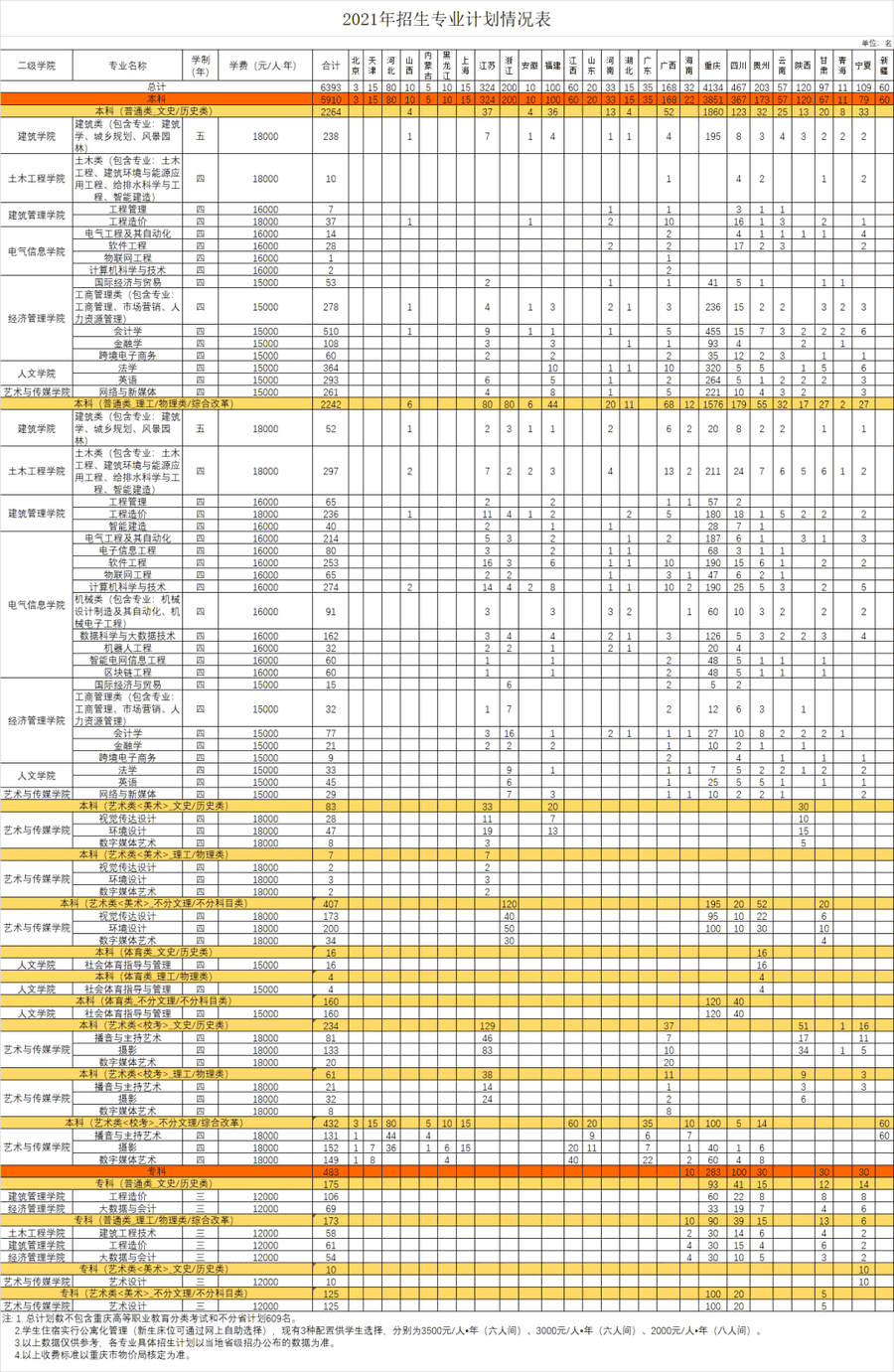 2021年重庆大学城市科技学院招生计划已经公布,以下是重庆市及全国各专业招生人数,这是填报志愿时非常重要的参考数据,供大家参考,如有变动,以学校官方公布为准: