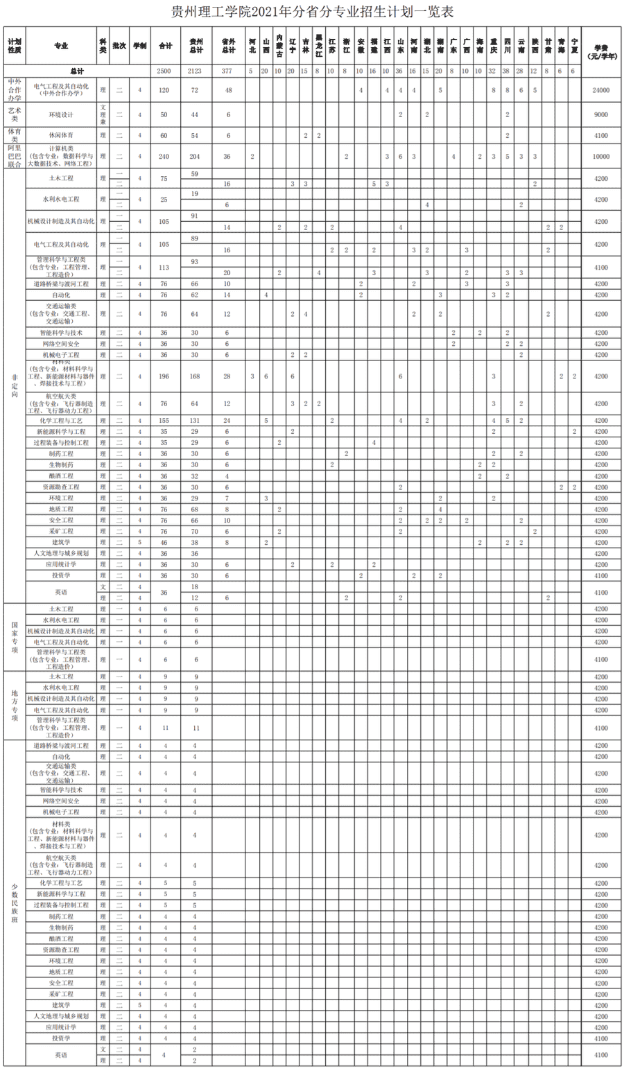 2021年贵州理工学院招生计划已经公布,以下是贵州省及全国各专业招生人数,这是填报志愿时非常重要的参考数据,供大家参考,如有变动,以学校官方公布为准:
