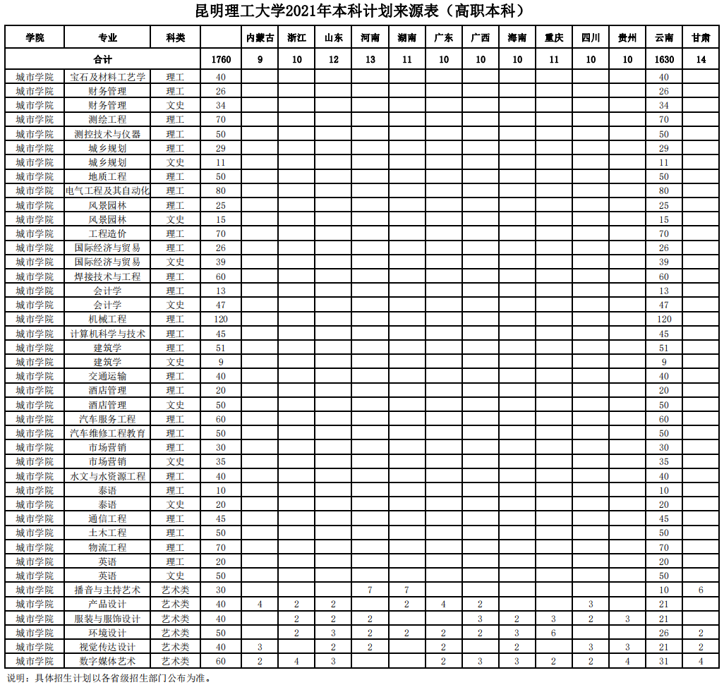2021年昆明理工大学招生计划已经公布,以下是云南省及全国各专业招生人数,这是填报志愿时非常重要的参考数据,供大家参考,如有变动,以学校官方公布为准: