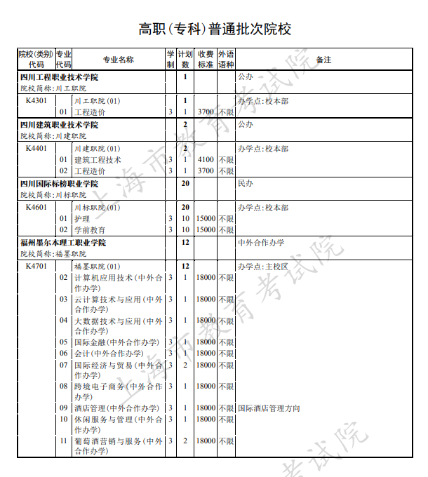 2020年上海高考专科批征集志愿招生计划 时间:2020-09-08 09:02 招生计划 2020上海专科批征集志愿即将开始填报,招生计划也已经公布。本次征集志愿的填报时间为9月8日上午10:00至9月9日上午10:00。下面小编为大家总结整理了本次征集志愿的招生计划,请各位考生抓紧时间填报。上海2020高考专科批征集志愿招生计划一览