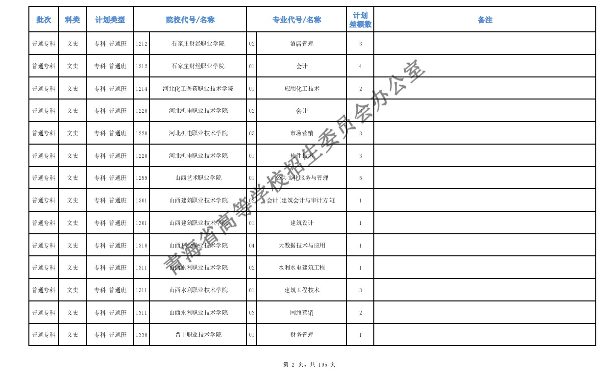 注:由于篇幅限制,本页面仅展示部分院校的征集志愿招生计划,详情请点击文末下载,或登录青海省教育考试院官网进行查询。
