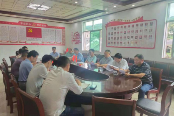 在胡宅村委会,陈雨前一行听取了村支部书记胡永久对村情况的简要介绍及下一步规划,驻村第一书记兼工作队队长舒新兴对近期的工作和生活情况作了汇报。