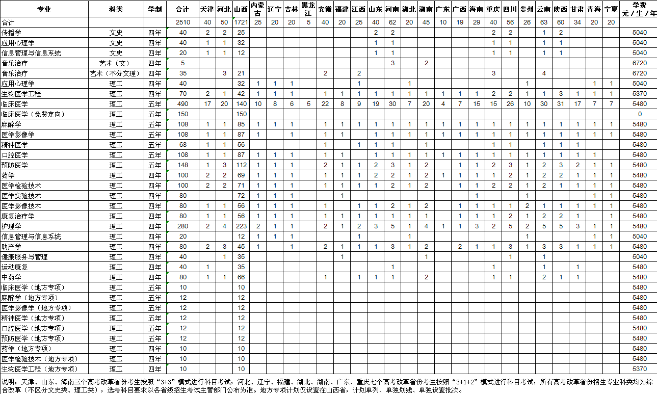 2021年长治医学院学费是多少 各专业收费标准一览