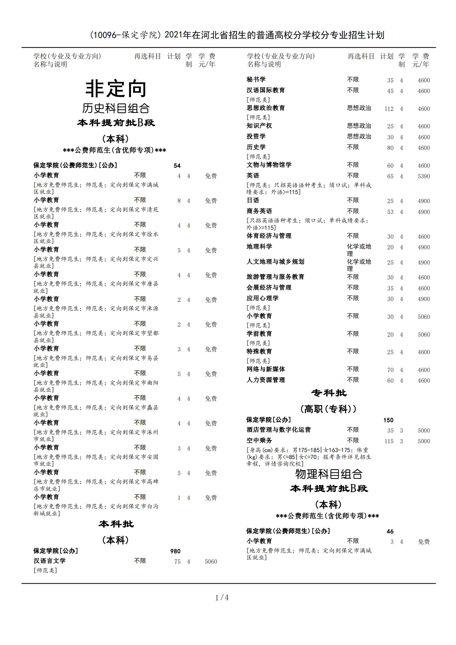 2021年保定学院学费:普通类专业4600-5390元/年;艺术、体育类专业8000元/年。