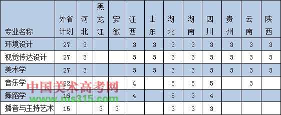 录取规则 专业成绩采用生源省相应的艺术联考(统考)成绩,考生文化统考成绩和专业成绩均需达到省定相应批次录取控制分数线。学校执行生源所在省该类专业的投档规则,对进档考生艺术类各专业具体录取原则如下: 美术学、环境设计、视觉传达设计、音乐学、舞蹈学专业:对进档考生,在执行平行志愿投档的省份,按照投档成绩从高到低择优录取;在执行顺序志愿投档的省份,按综合分[综合分=(艺术联考(统考)成绩/艺术联考(统考)成绩满分)×60+(文化考试成绩/文化考试成绩满分)×40]从高到低择优录取,同等条件下文化分优先(文化分相同,则依次比较外语、语文、数学);舞蹈学专业要求男生身高不低于170厘米,女生身高不低于160厘米。 播音与主持艺术专业:对进档考生,在执行平行志愿投档的省份,按照投档成绩从高到低择优录取;在执行顺序志愿投档的省份,按照高考总分达到所在省(自治区、直辖市)一本线(若一本线分A、B两档,我校执行A线高档)70%以上,且不低于当地艺术类专业最低录取控制分数线的,按专业成绩从高到低择优录取。广西大学2019年区内艺术类本科招生计划