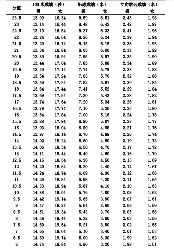河南2022高考体育类专业招生身体素质考试内容和评分标准