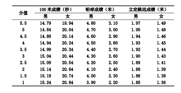 身体素质考试内容和评分标准