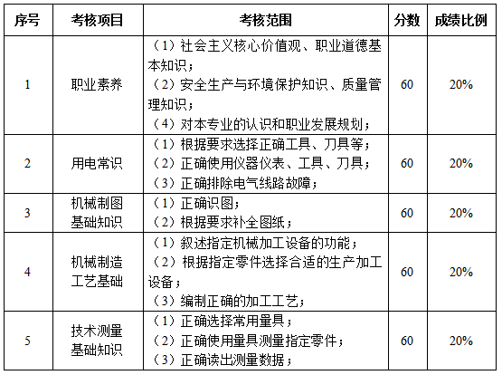 考核满分为300分,机电常识是考核重点,包括基本识图能力、机械零件的制造常识、用电常识及技术测量方法等内容。