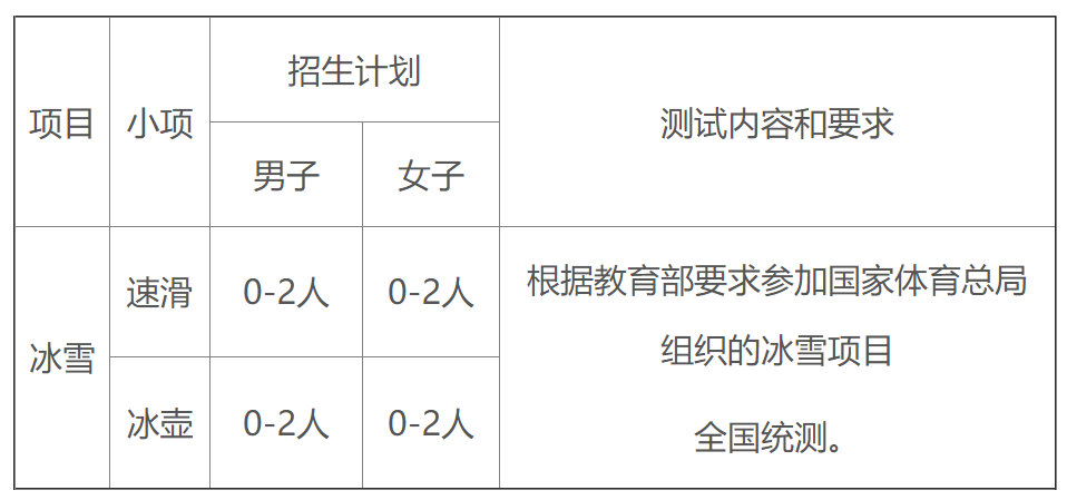 (四)考生须参加国家体育总局组织的冰雪项目统测报名(须选择填报我校志愿),并按要求参加冰雪项目统一测试。