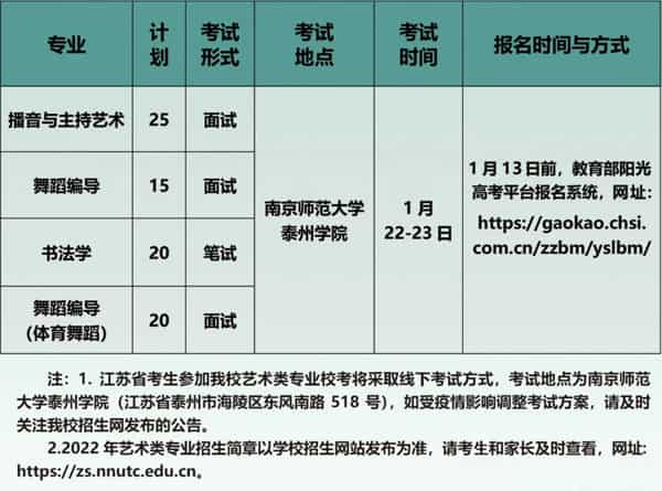 南京师范大学泰州学院2022年艺术类专业招生简章