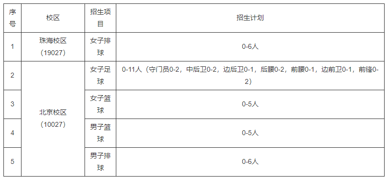 1.我校高水平运动队面向全国招生,各项目招生计划视生源情况可在项目、位置间调整;