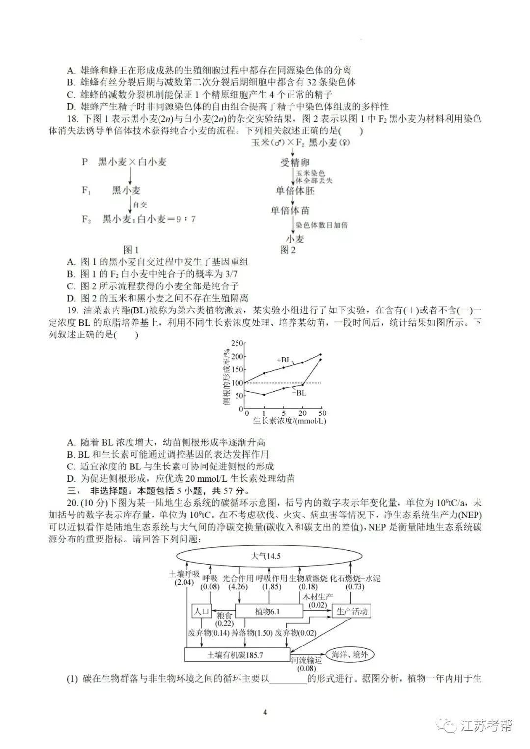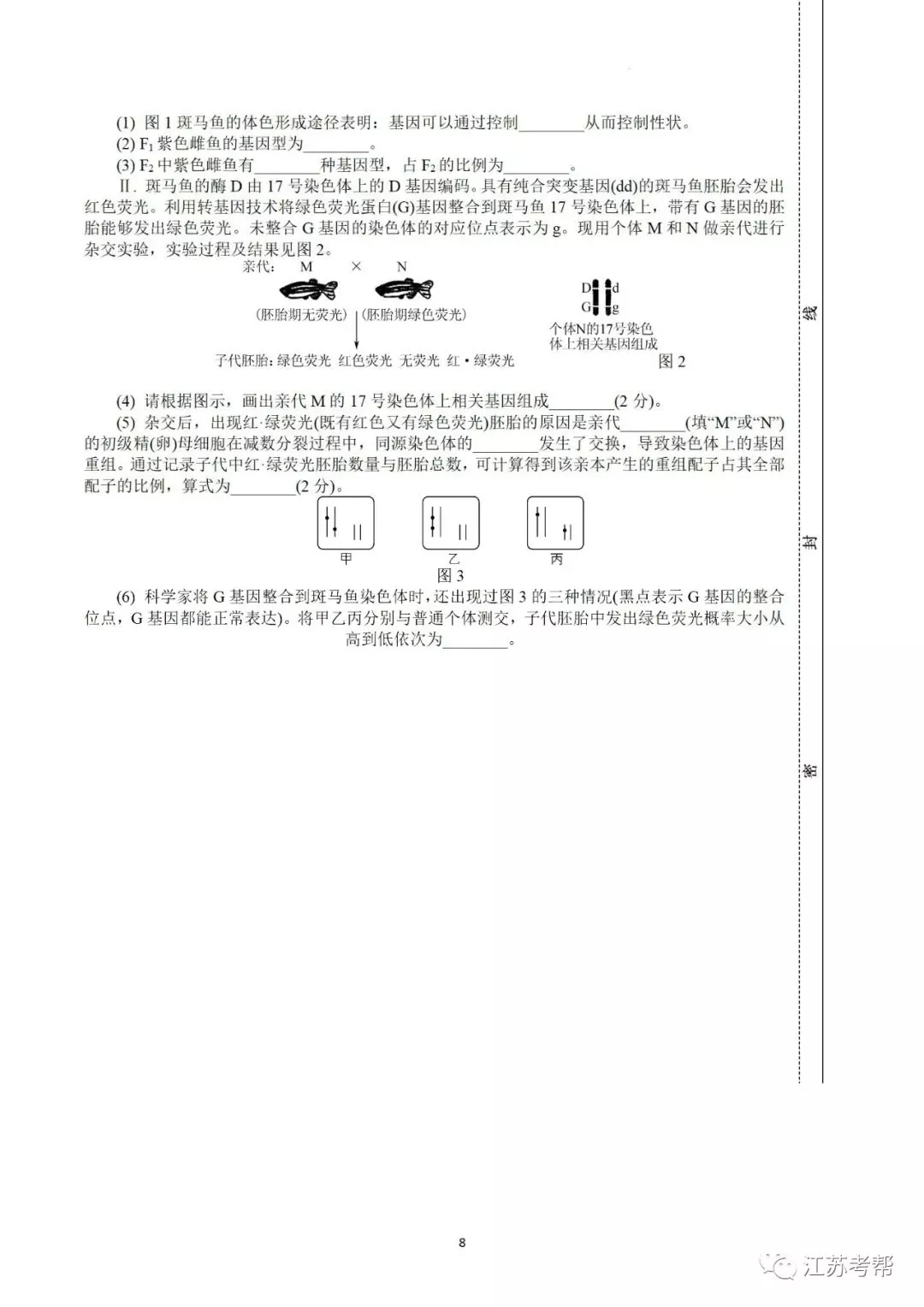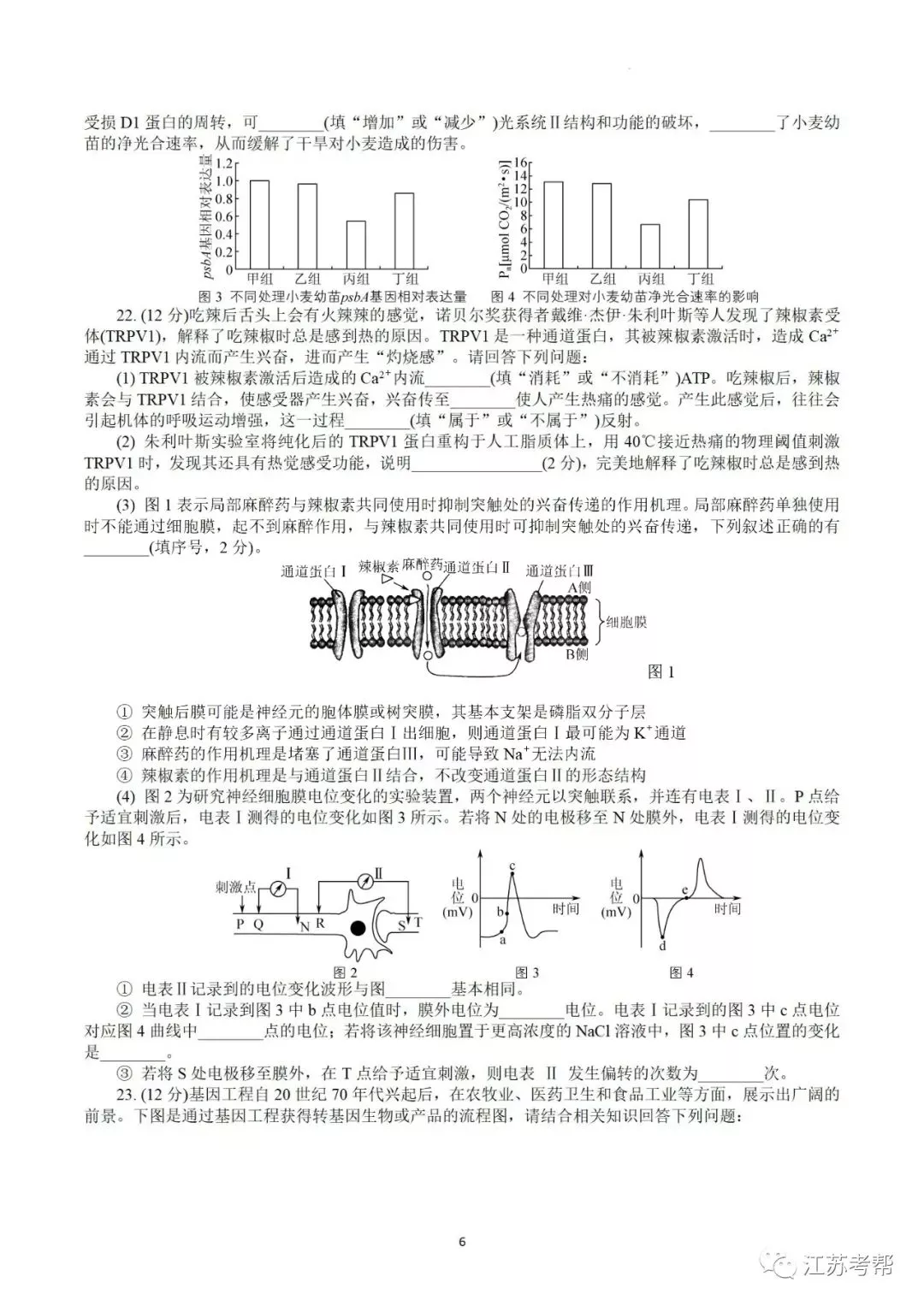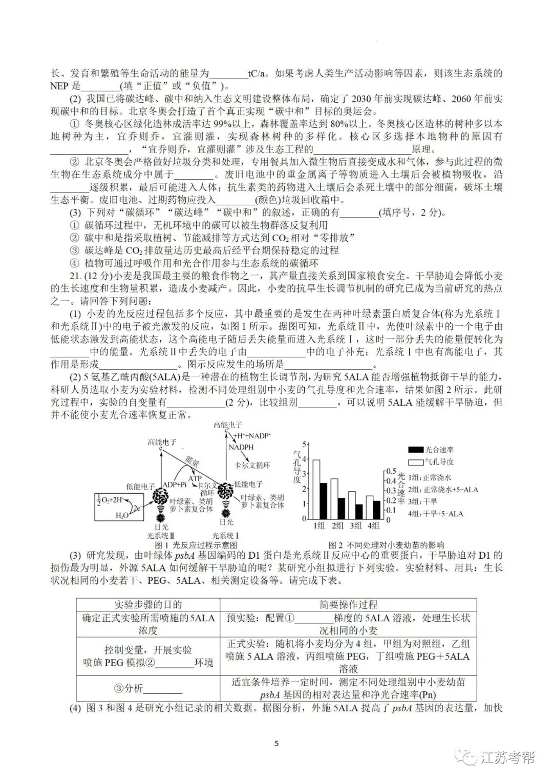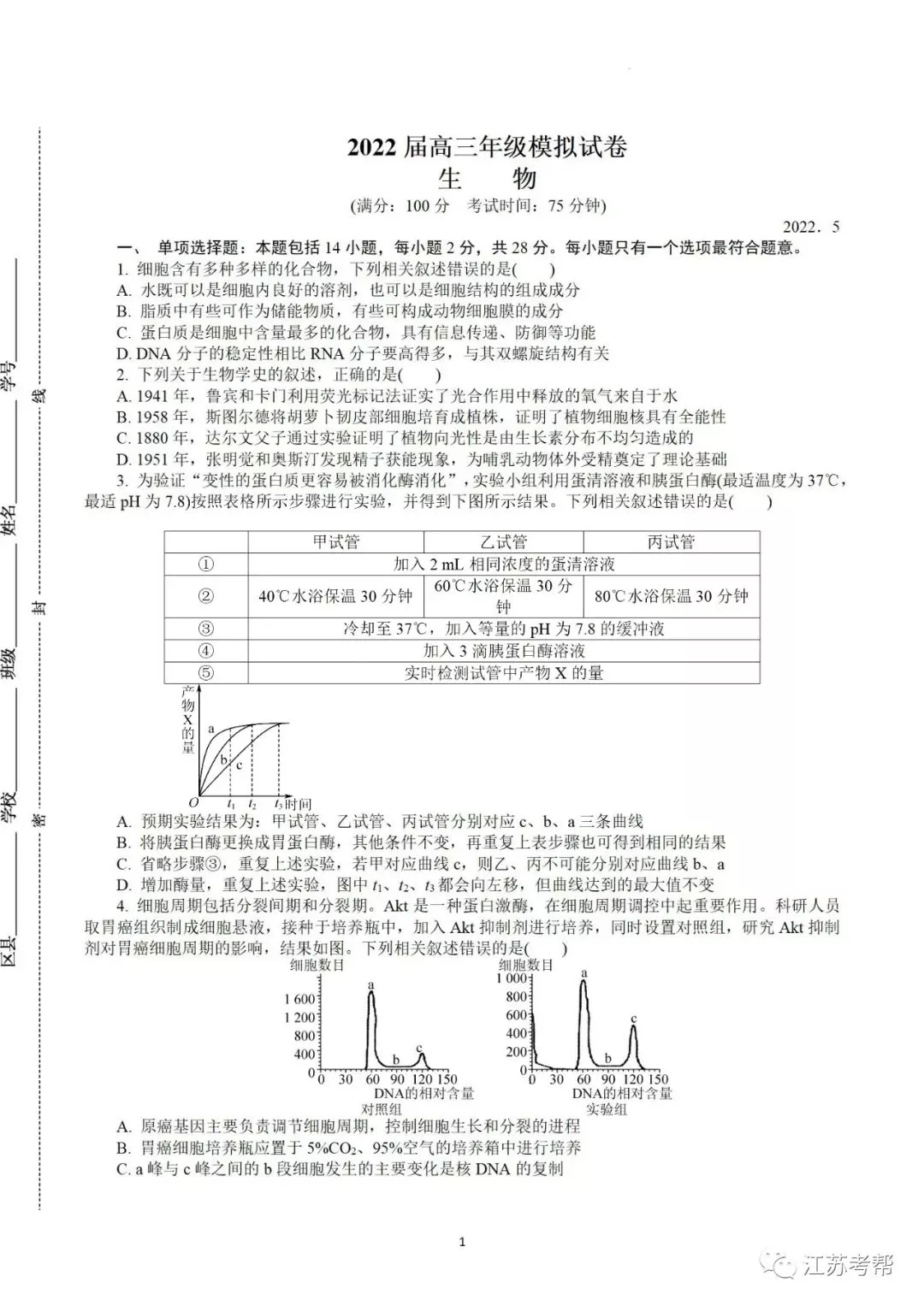 江苏南京市2022届高三年级5月三模生物试题及参考答案