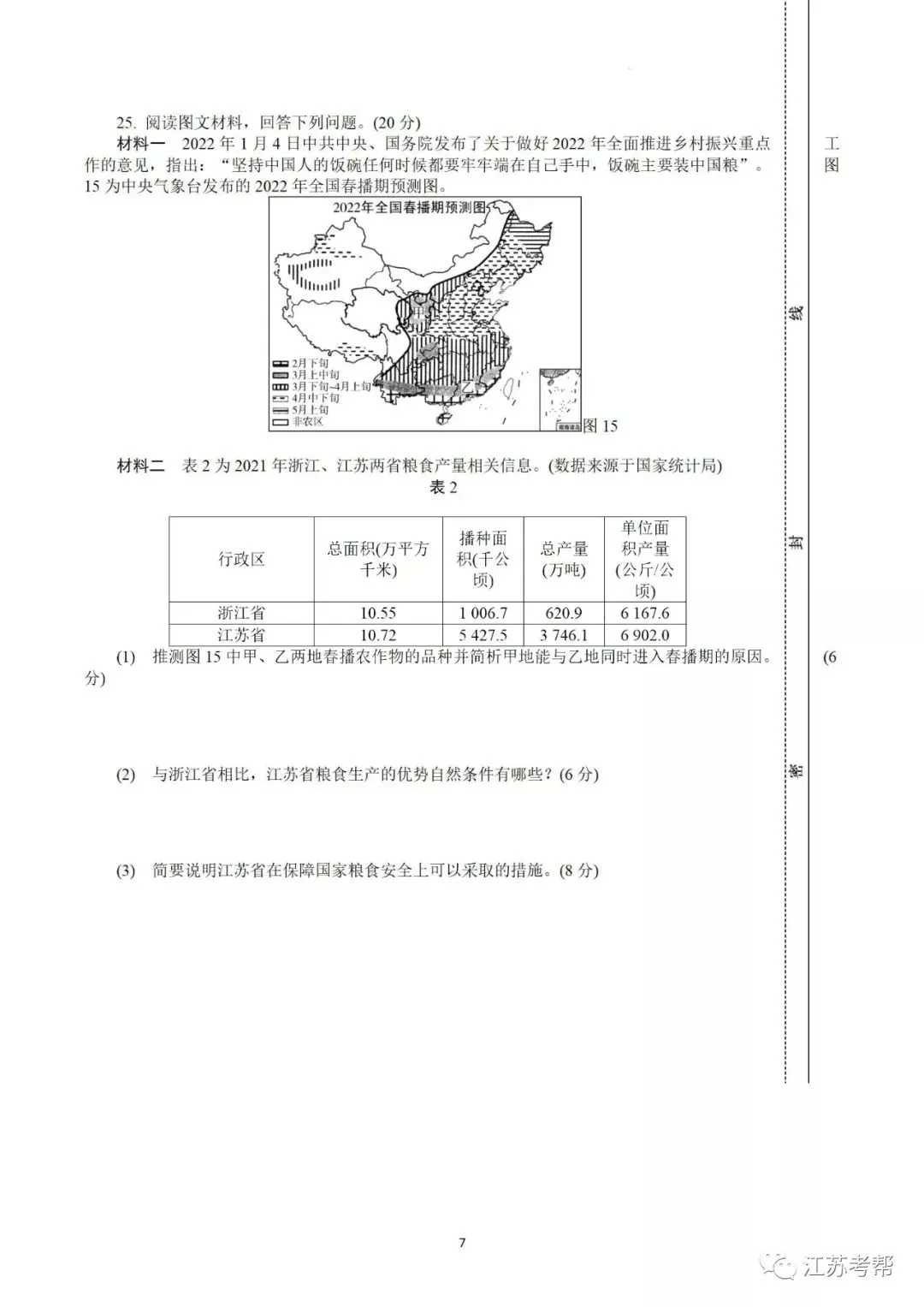 江苏南京市2022届高三年级5月三模地理试题及参考答案