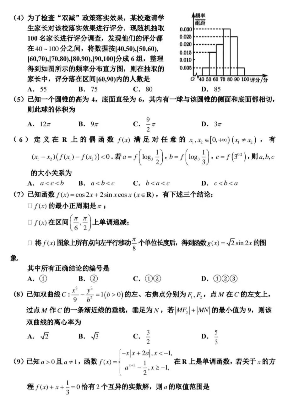 2022年高考全国乙卷数学(文)试卷真题与答案解析
