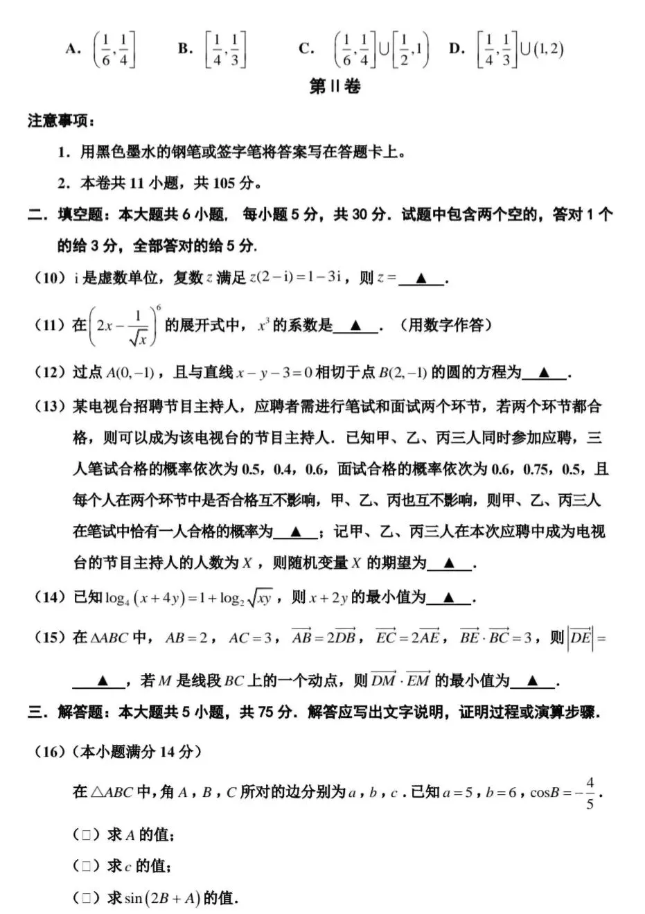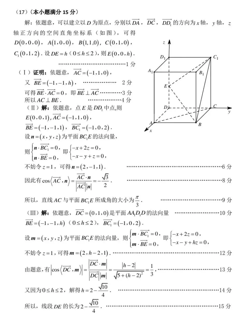 天津市部分区2022年高三质量调查试卷数学试题及参考答案(二)