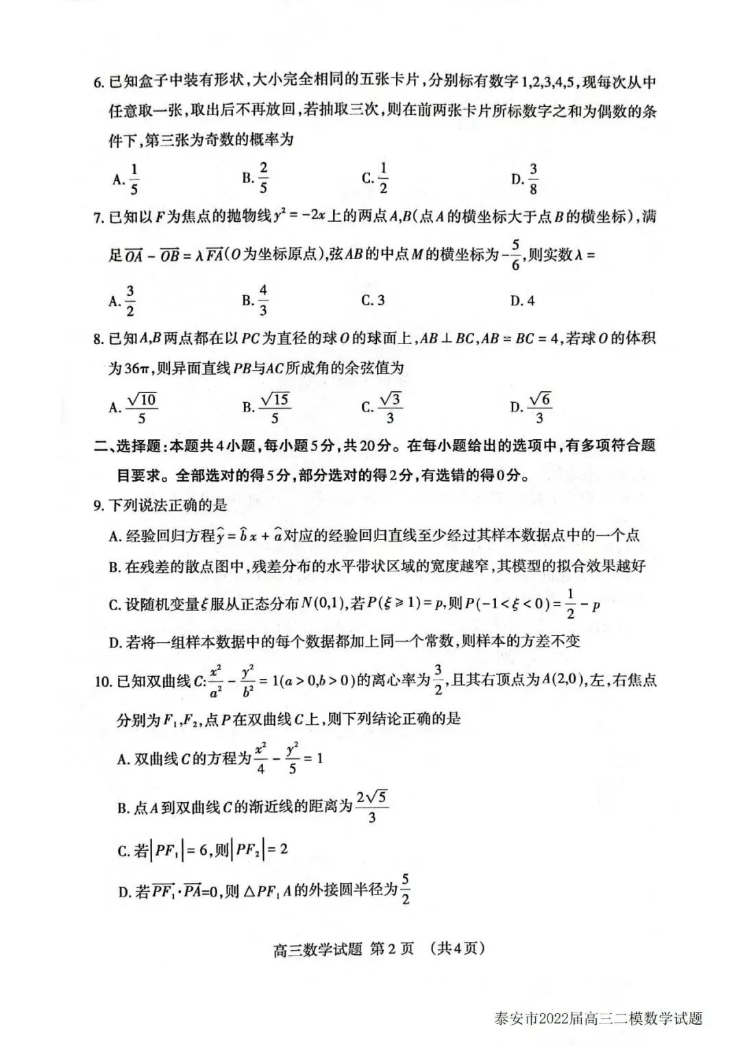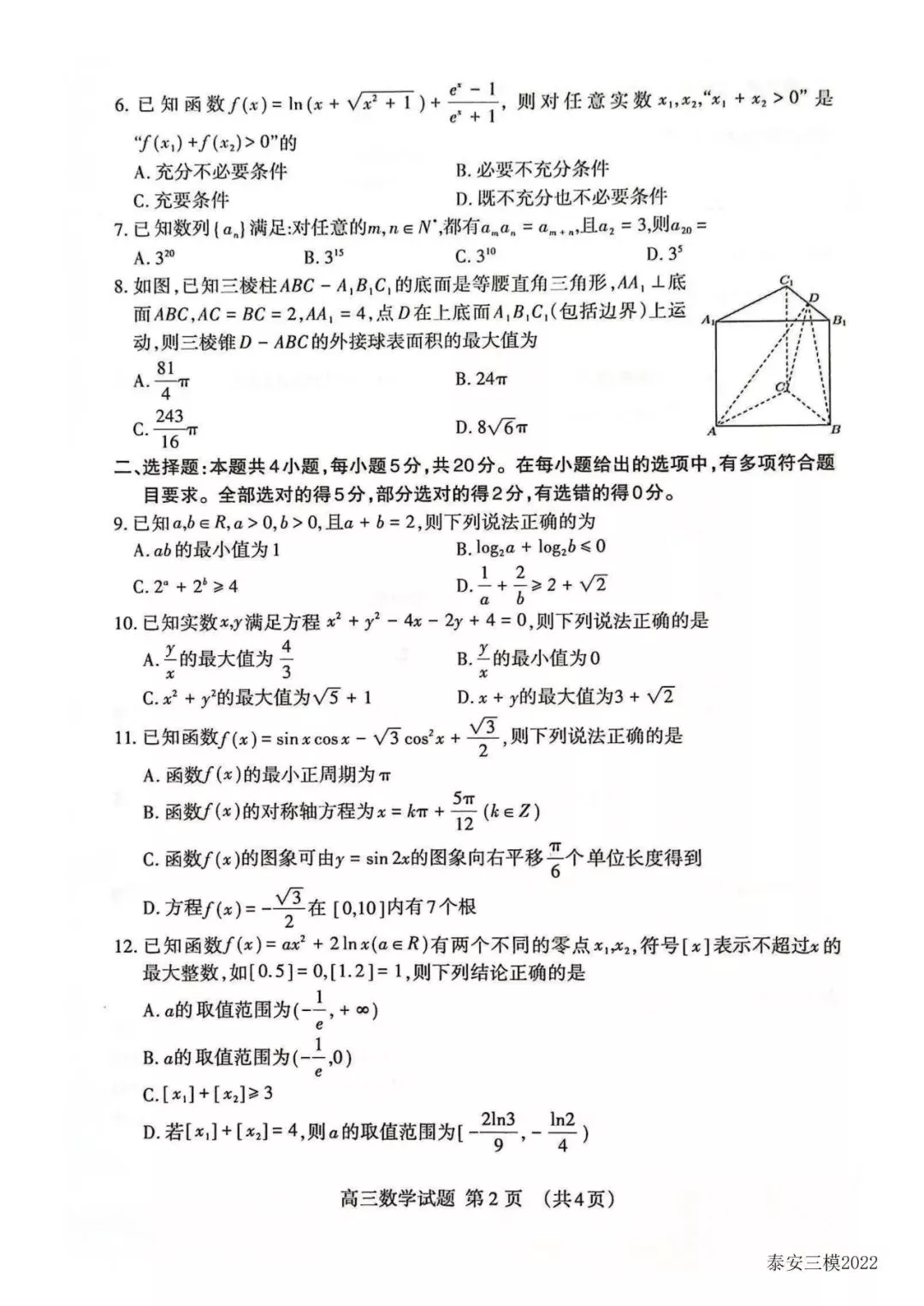 泰安四模试题