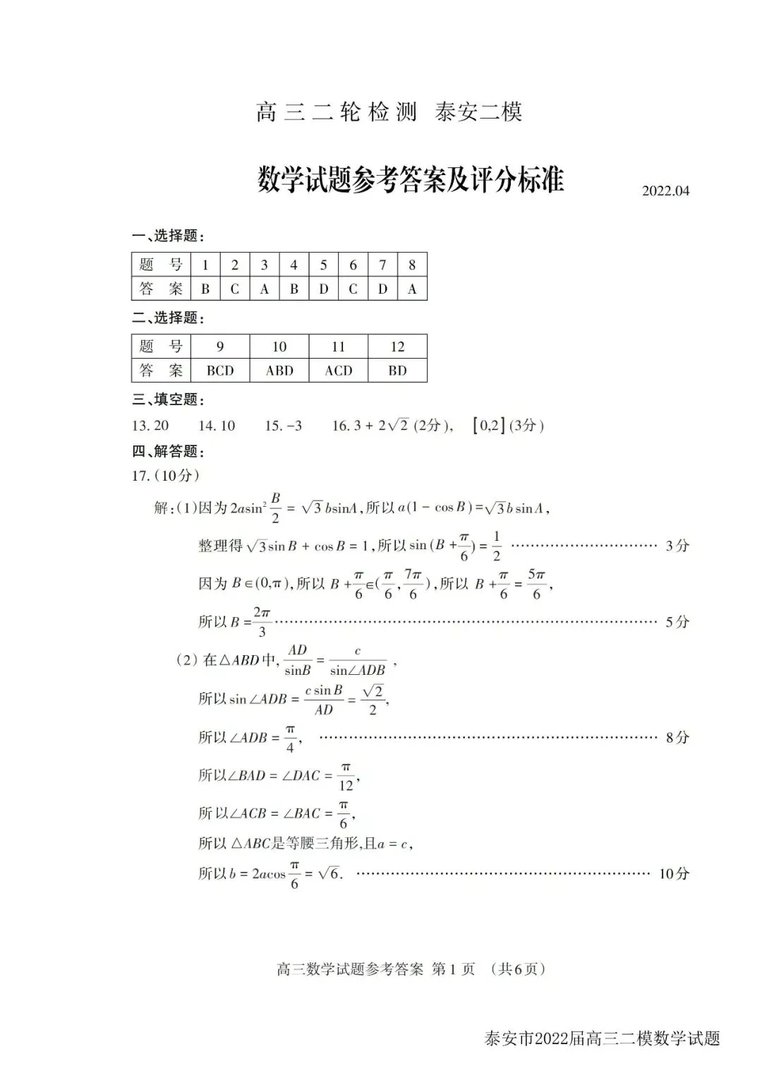 泰安二模答案