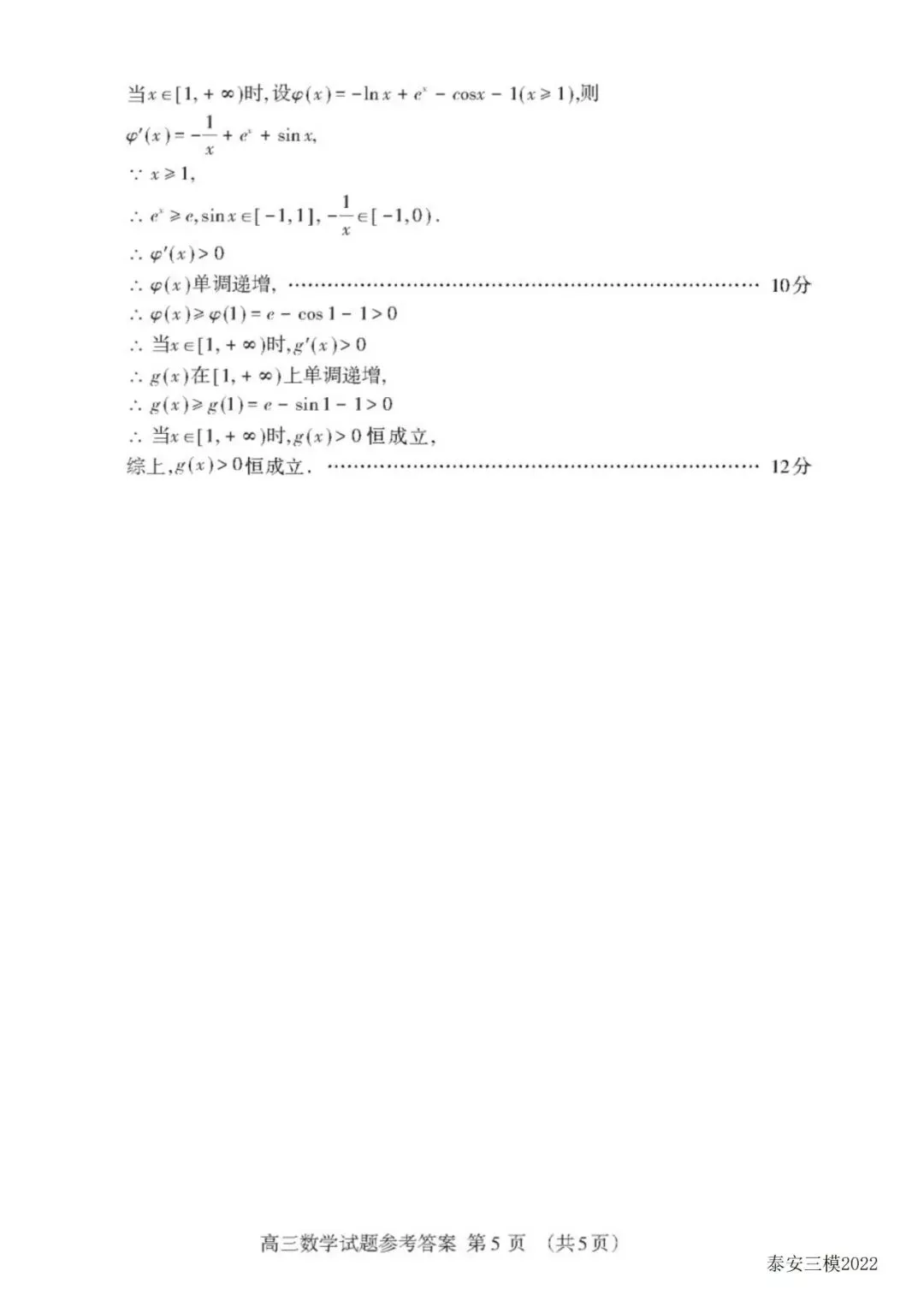 泰安三模答案