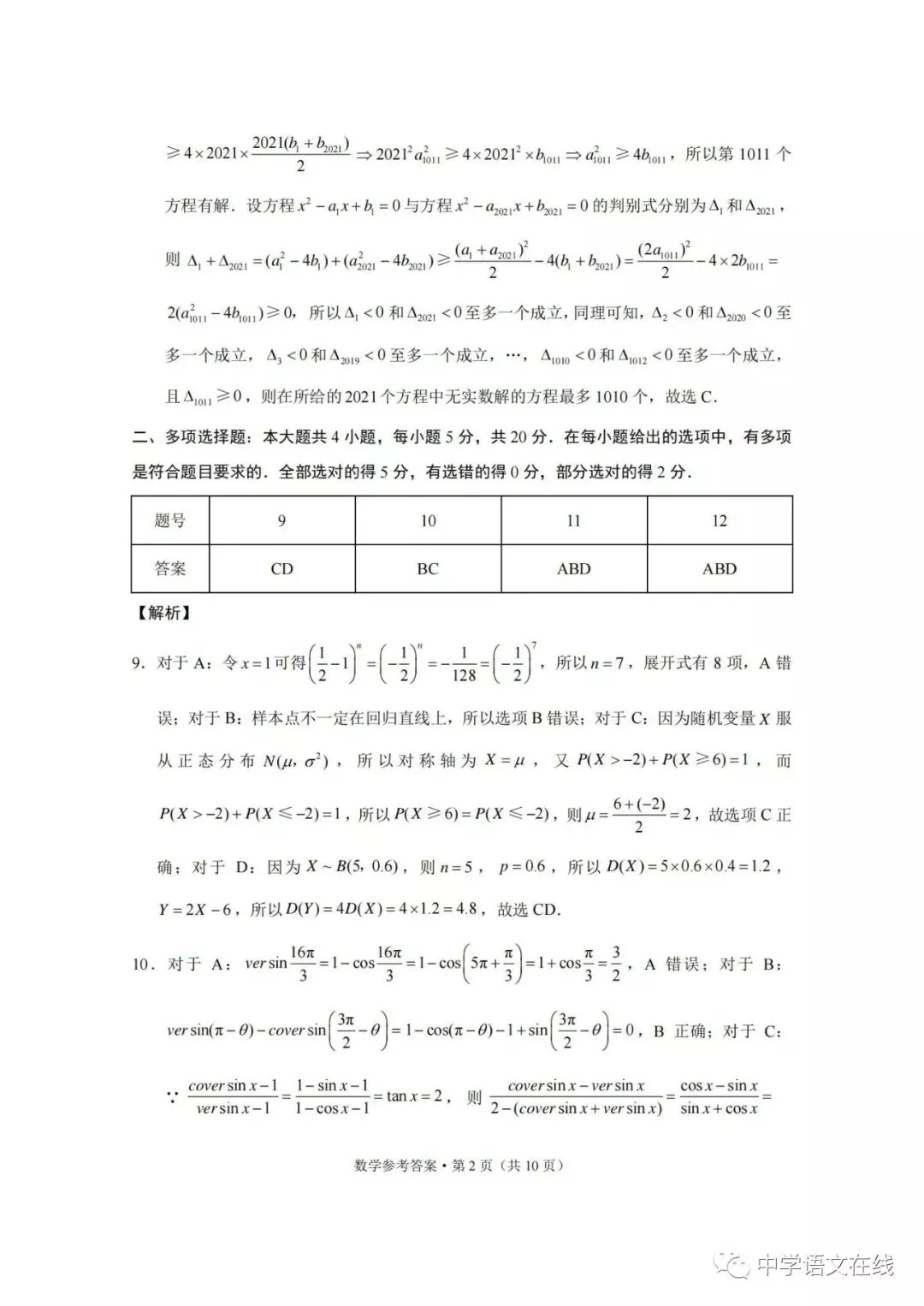 2022年新高考II卷(新高考二卷)数学试卷真题与答案解析