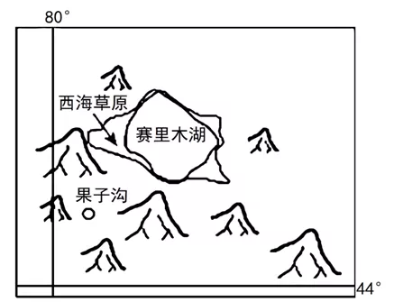 【5题详解】据材料可知,自赛里木湖南岸进入果子沟考察时是暑假期间,此时是夏季,太阳直射北半球,新疆日出东北,日落西北,正午太阳位于正南方,AC错误;读图可知,该地位于80°E附近,北京时间(120°E地方时)12时,当地地方时是9时20分,处于上午,太阳位于东南方,日影朝向西北,B正确;北京时间22时,当地地方时是19时20分,接近日落,太阳不会高悬天空,D错误;故选B。