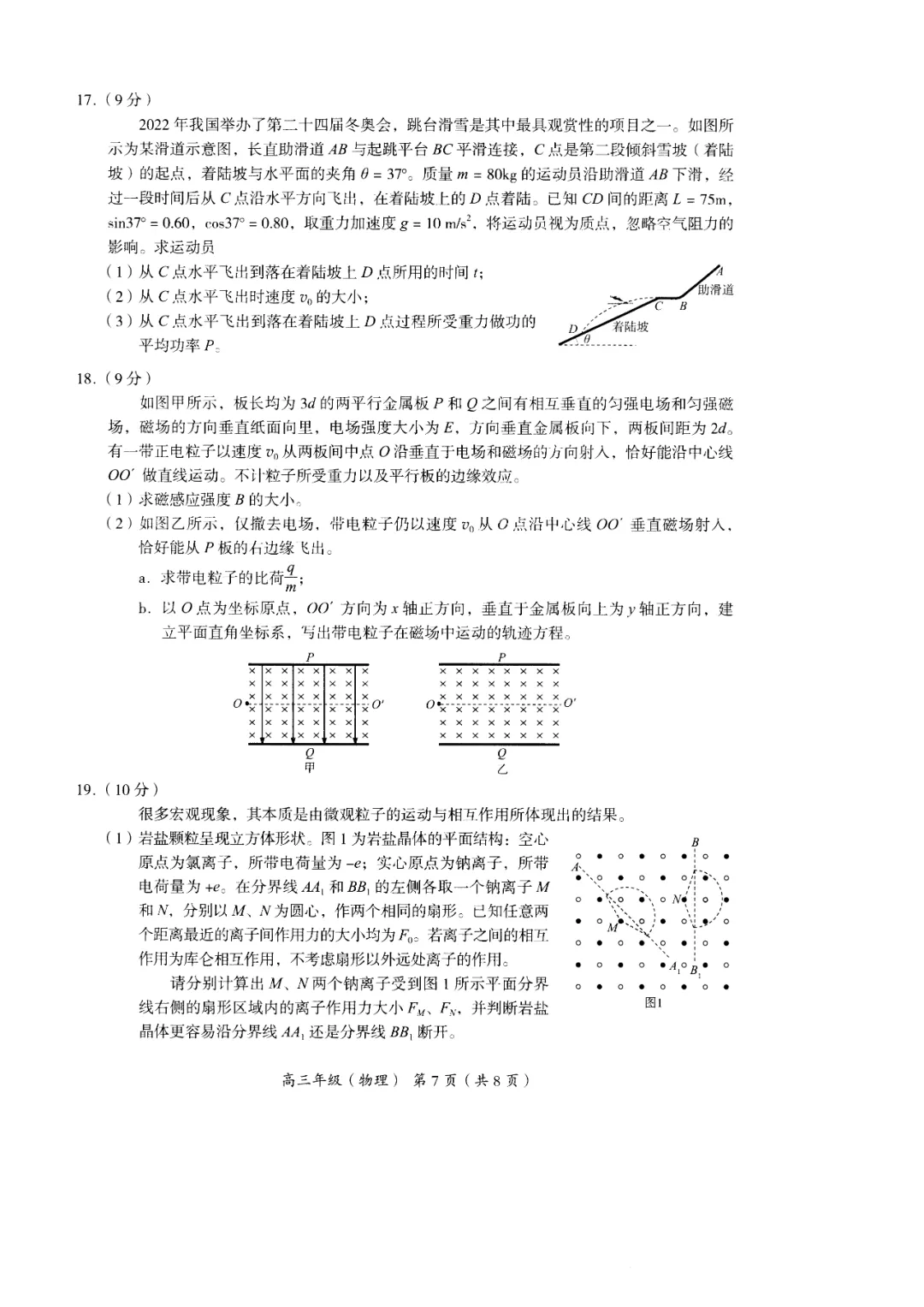 第39届全国中学生物理竞赛复赛参考答案及试题(2022年奥林匹克)