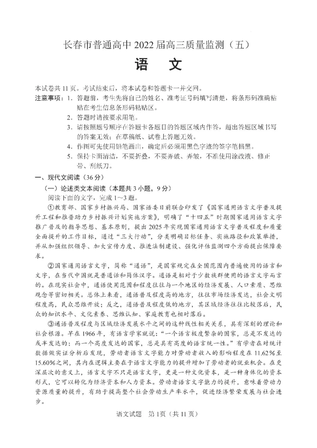 2022全国新高考I卷(新高考一卷)语文试题及答案